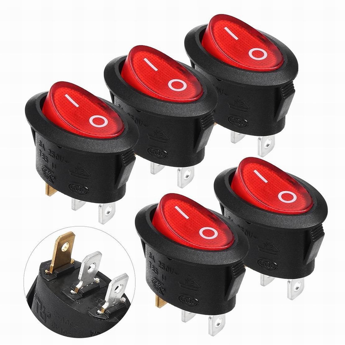 - 1 Pcs Rocker Switches AC 250V/10A 125V/16A Oval 3 Pins SPST Red Lamp On Off Switch