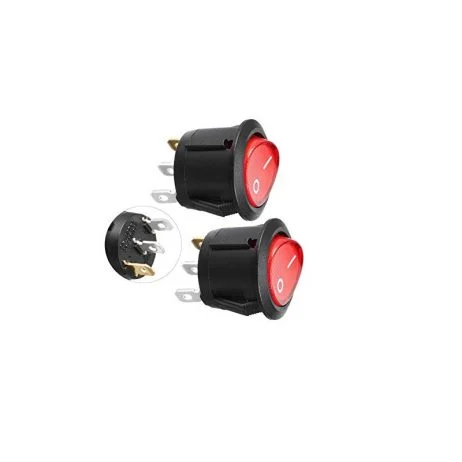 10A 250V AC SPDT ON-OFF 3 Leg Round Rocker Switch with Red Light (1 piece)