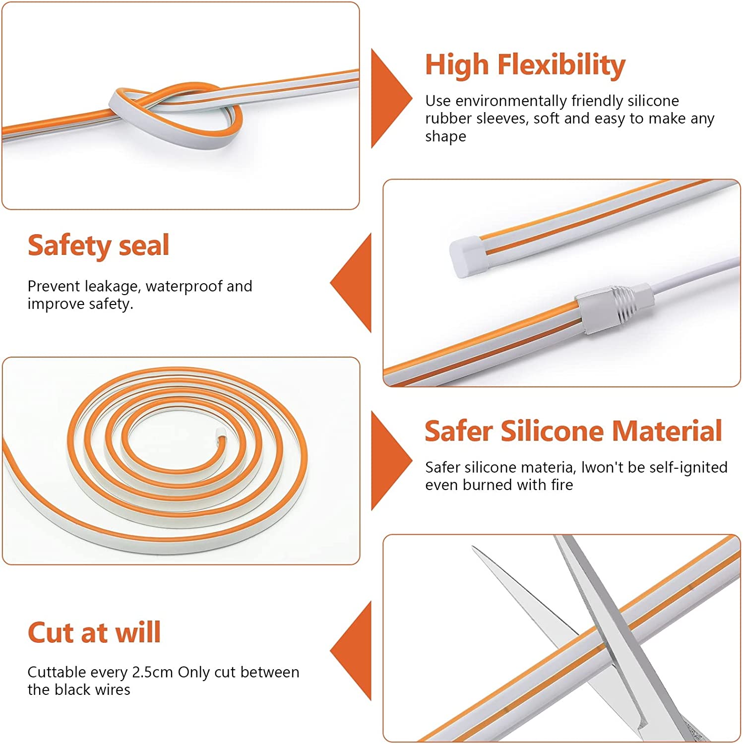 - MORE SAFER TO USE, AND PERFECT FOR DECORATION: This silicone led rope neon lights won’t be self-ignited even burned with fire. LEDs won’t die out easily. It also works well from -35°to 200 °. Ideal for home, commercial building, showcase, indoor, outdoor lighting decoration for all year round