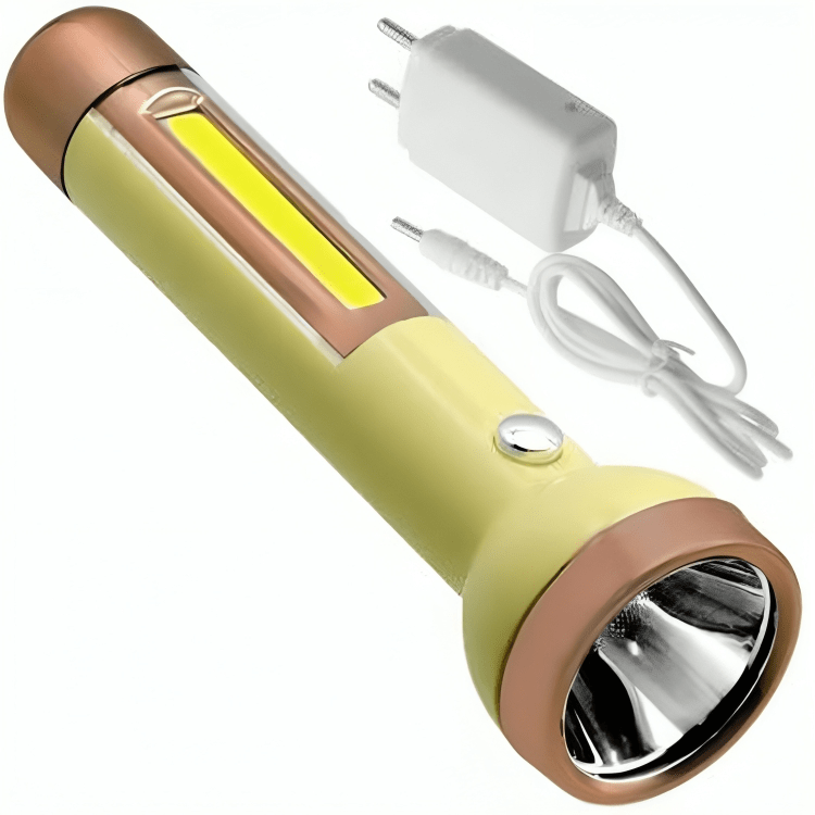 2 In 1 Rechareable LED Flashlight Torch 1800mah (8 Hours) with COB Spotlight Torch