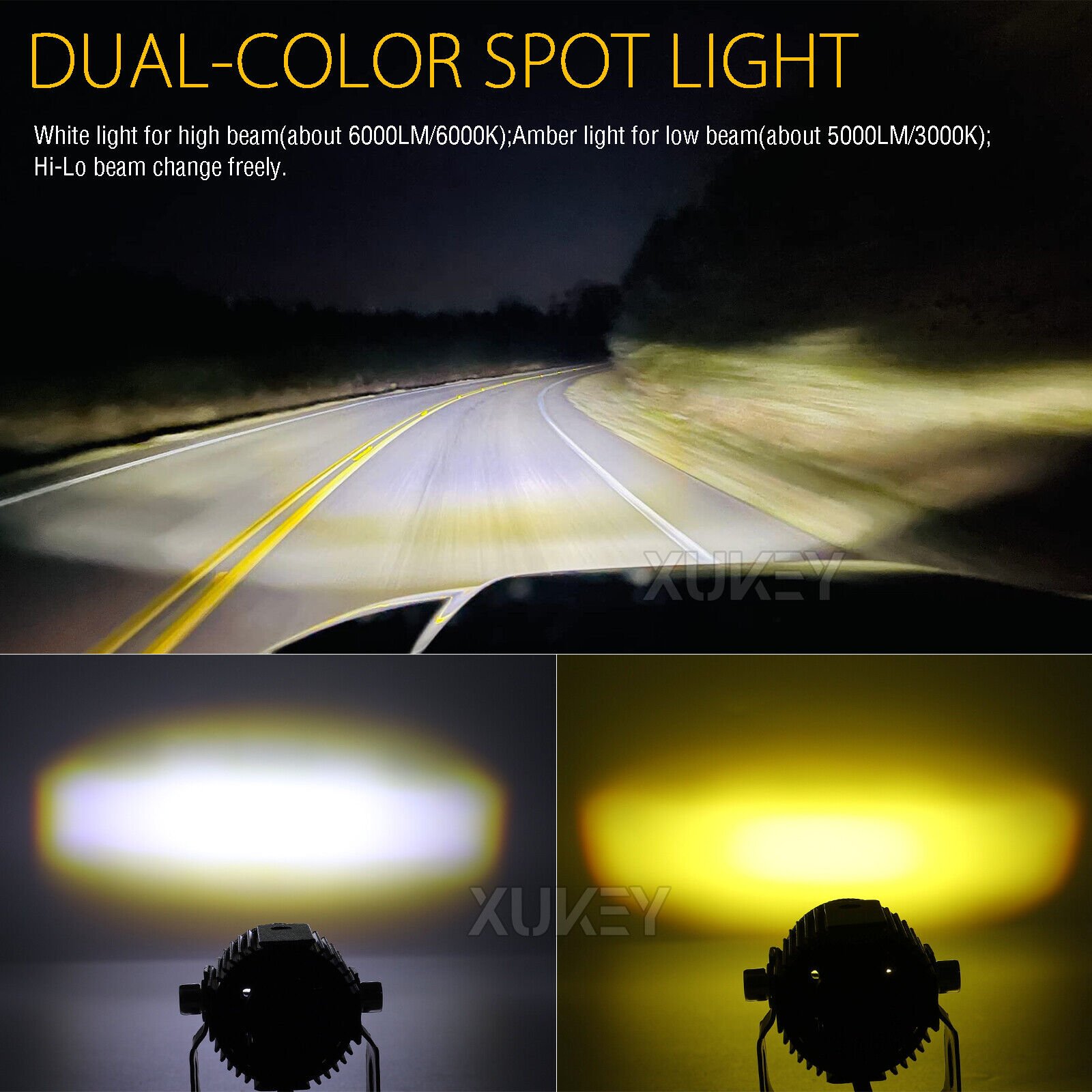 - You can switch the white light as the driving light and the yellow light as the fog light.