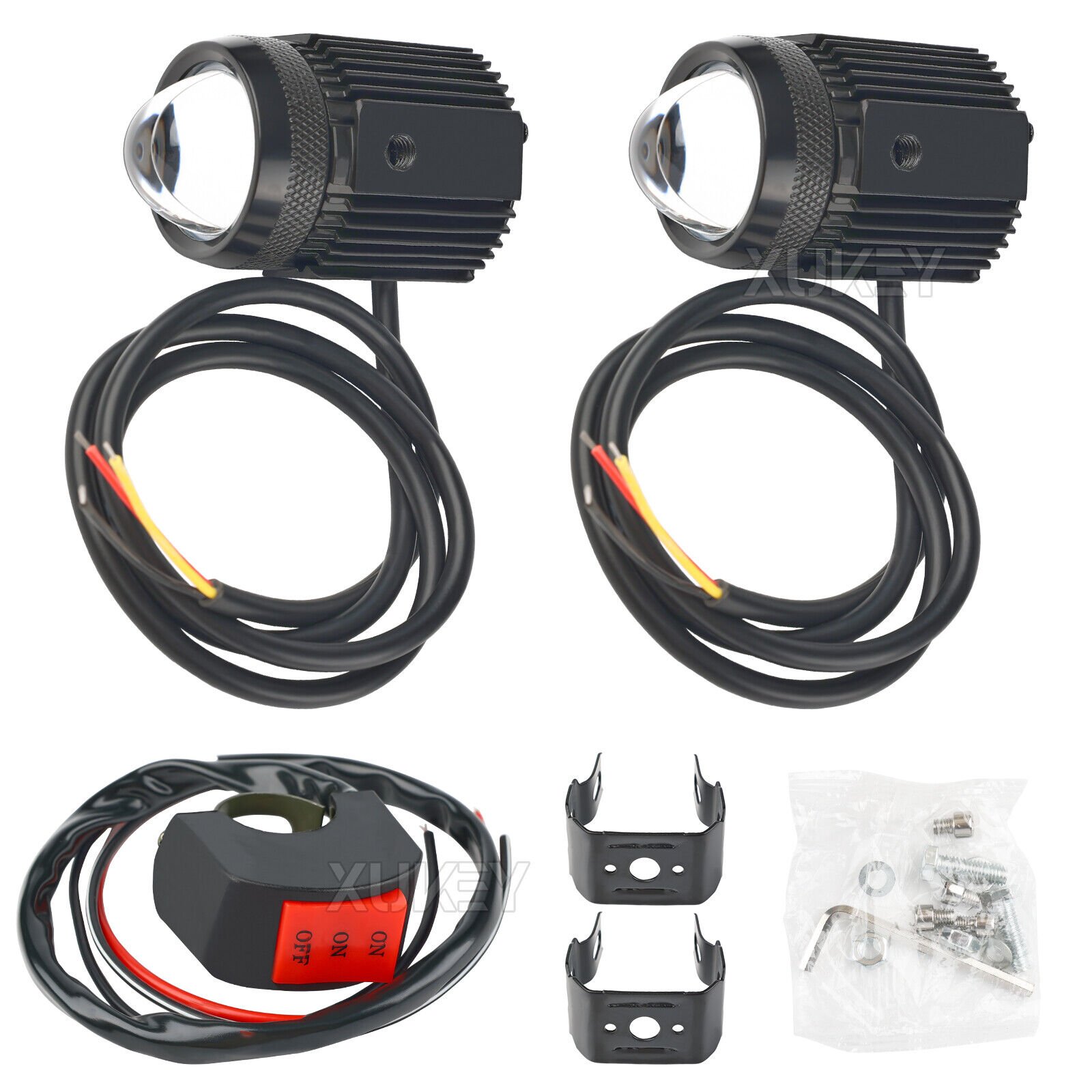 2Pcs Motorcycle LED Headlight Motorbike Driving Fog Spot Light Switch Bracket