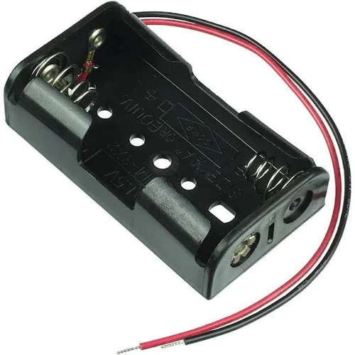 This 2 x 1.5V AA Battery Holder can hold 2  1.5VAA battery which can make a 3.0 V rechargeable battery pack from NiMH / NiCd cells or a 9V battery pack from alkaline cells or can also be used for one-time use and throw batteries for small DIY projects. The battery holder puts the batteries in series so that you have 2x the voltage of an AA battery. (approx. 3.0V)