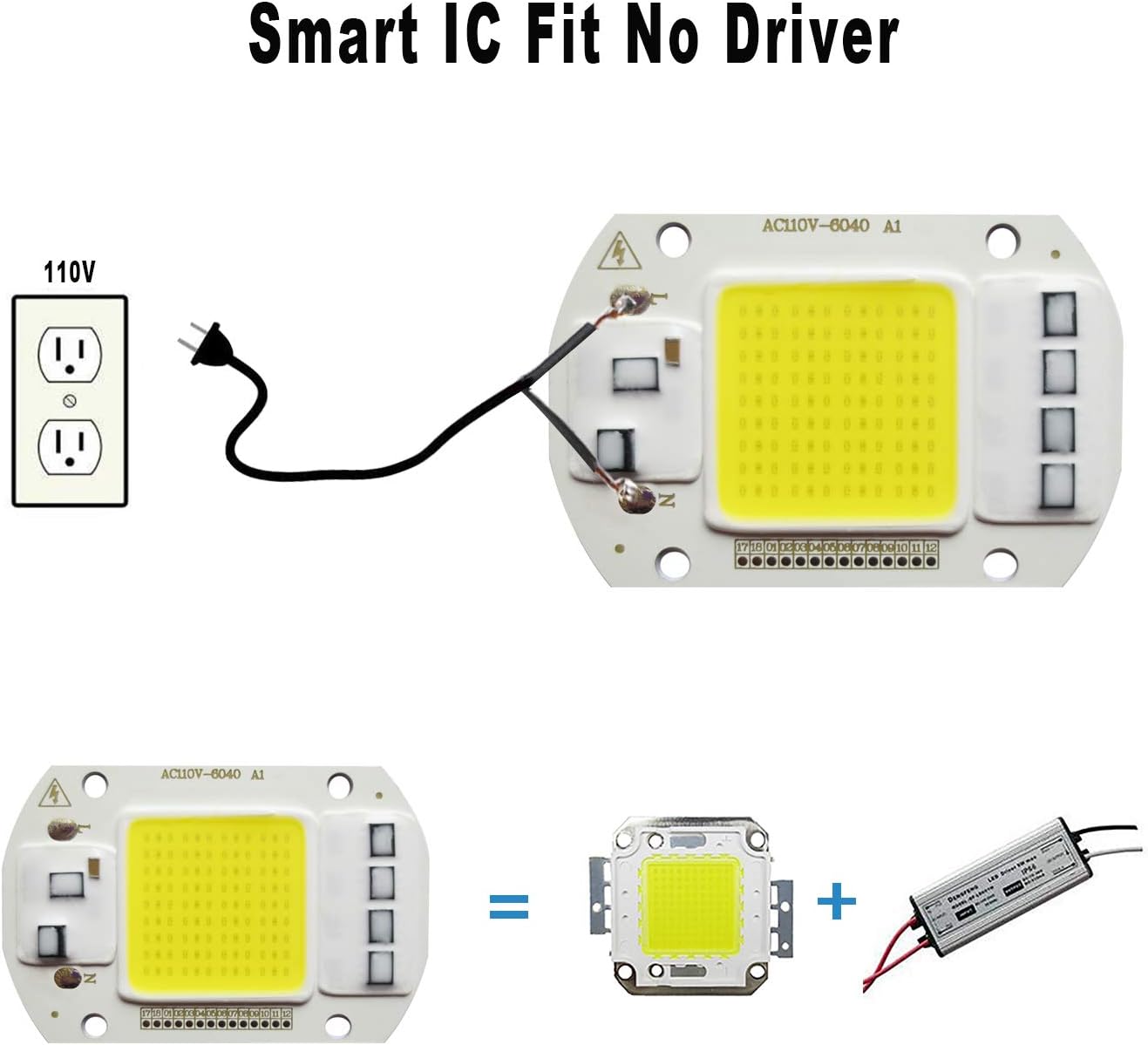 - 50 W LED smart IC chip, Cool white emitting colour.
