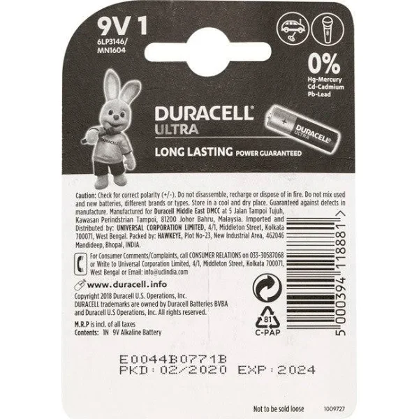 • Guaranteed for 5 years in Storage: Duracell 9V alkaline batteries are guaranteed for 5 years in storage.