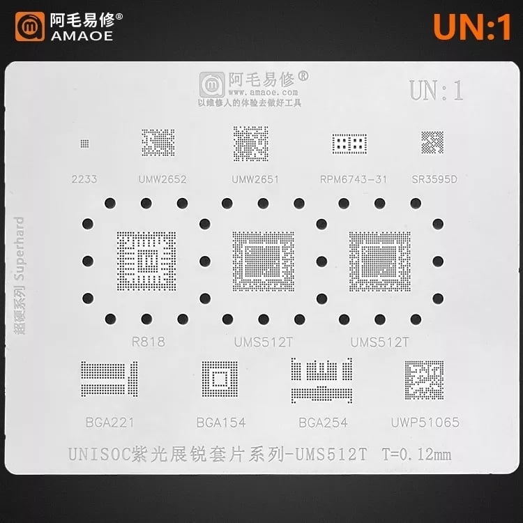Be the first to review “Amaoe UN1 CPU Stencil for UNIS0C UMW2652 2651 RPM6743-31 SR3595D R818 UMS512T BGA254 BGA154” Cancel reply