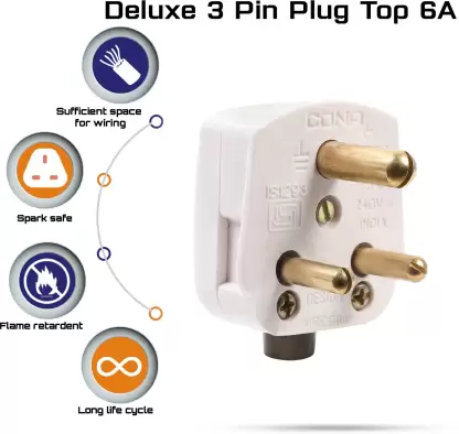 - Good grip pins keep it safe from spark and sleeved pins helps to phase marking and safety. The 3 pin plug has a smooth finish with glow gives attractive design