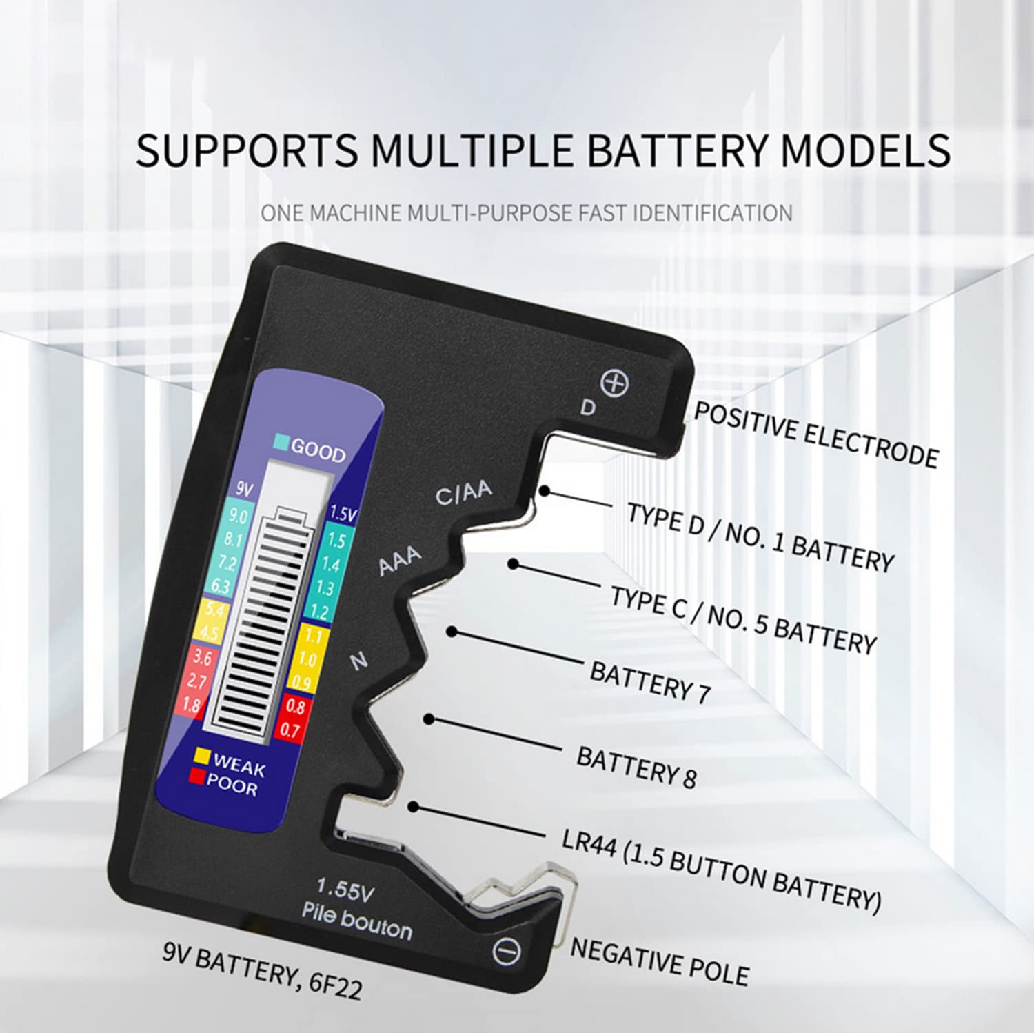- ★ HIGH COMPATIBILITY Testing Range: C, AA, AAA, D, N, 9V (6F22) and 1.55V button battery