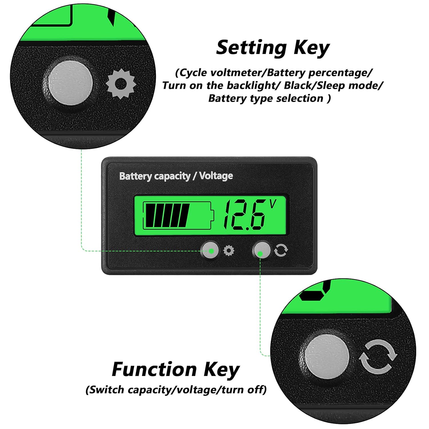 • Display Setting: – S1 setting will help you select if you want to see both charge percentage and voltage or any one. S2 setting will turn off the back-lit after every 10 sec of usage. S3 is back-lit setting is to keep back-lit on or off.