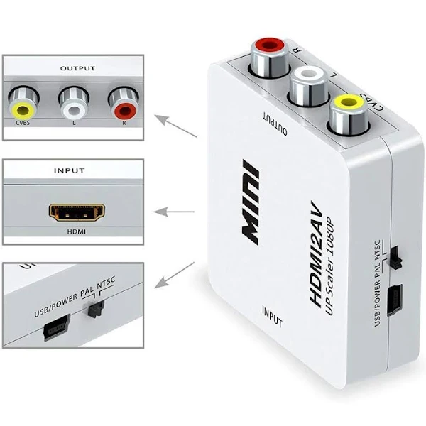 HDMI to RCA AV/CVSB L/R Video AV/RCA CVBS Adapter Mini HDMI2AV Video Converter Box Computer HD 1080P Support NTSC PAL Output