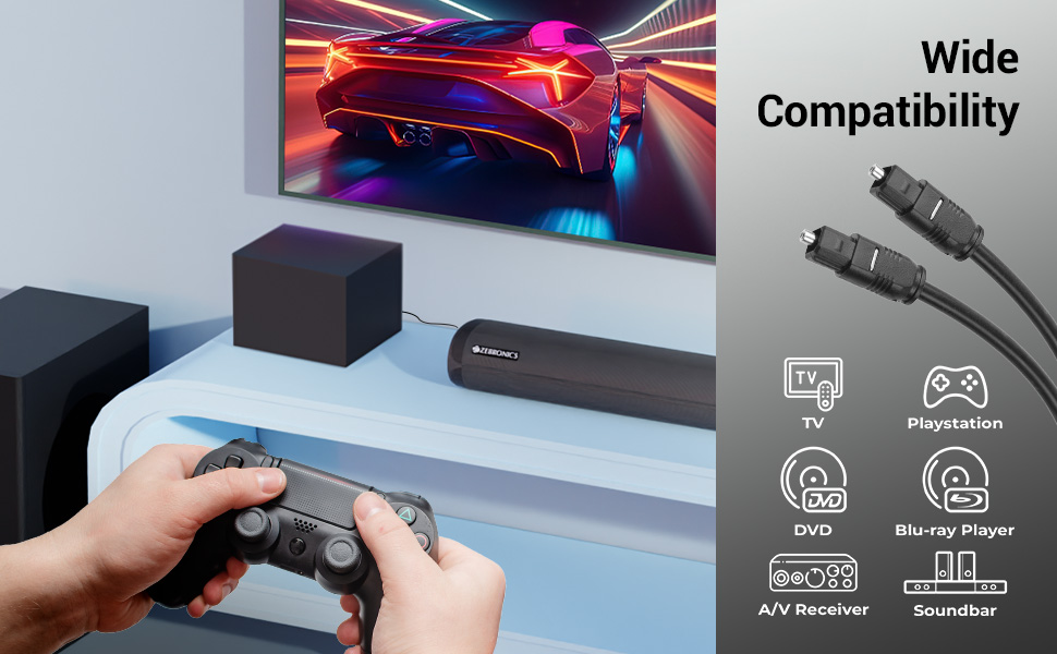 - Compatible with Optical-enabled devices like TVs, Sound Bars, A/V receivers, DVD, Blu-ray players, Playstation & more