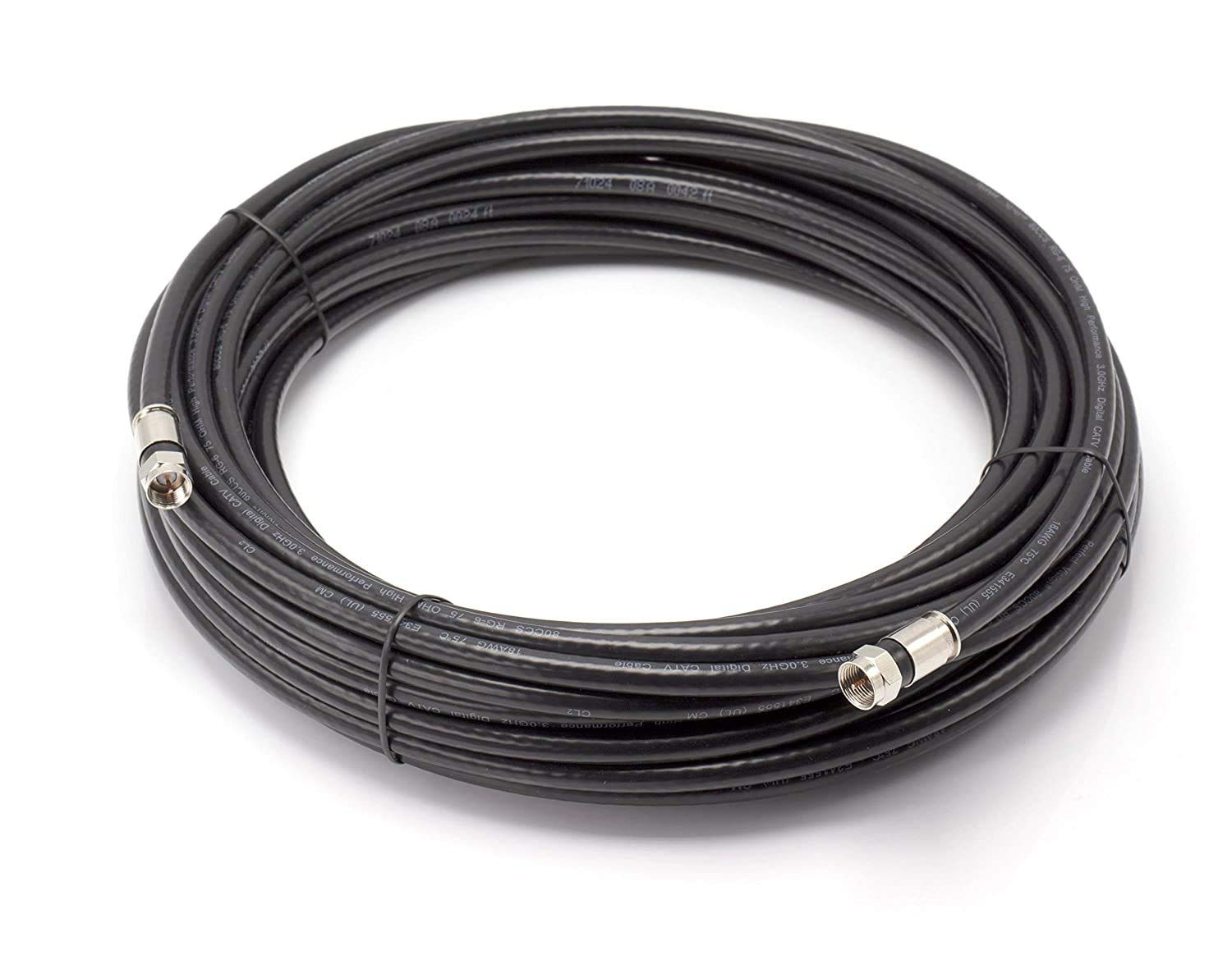 - 75 OHM RG6 coaxial A/V cable with 2 nickel-plated F-type male connectors; safe for use indoors or out; UL-rated for in-wall use