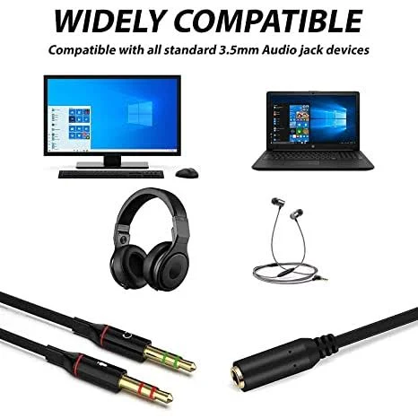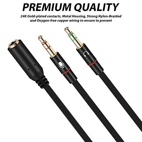 - Gold Plated for better sound quality and less loss.Input: 3.5mm 4-position female for headset or earphone.Output 1: 3.5mm 3-positiion male for Headphone Jack on your PC/Laptop.-Output 2: 3.5mm 3-position male for Mic Jack on your PC/Laptop.Oxygen-free copper provide maximum’s conductivity and durability.