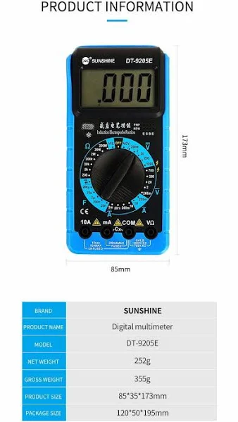 About SUNSHINE DT-9205E Digital Multimeter