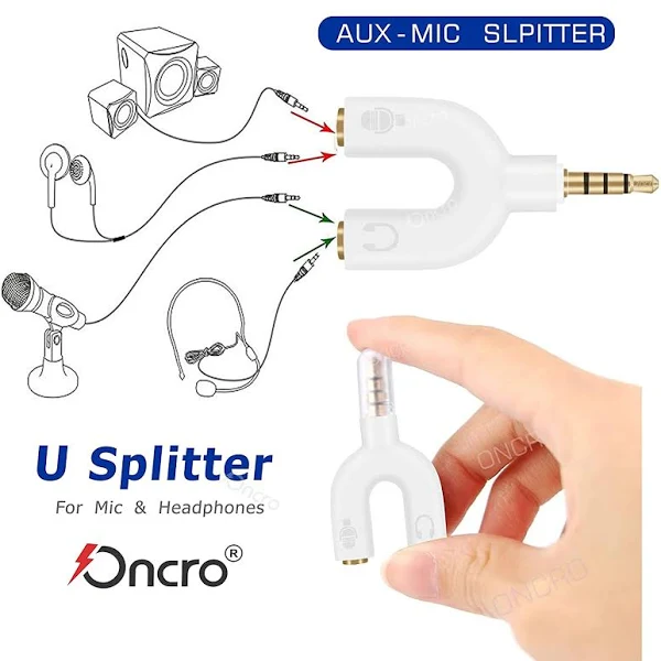 white, steel 3.5mm Audio Jack to Headphone & Microphone Splitter Converter Adaptor 0.05 m AUX Cable Phone Converter