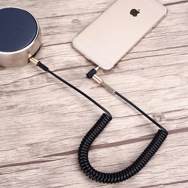 This is a stealthy Stereo Audio Aux Cable! This premium 3.5mm Male to Male Coiled Stereo Audio Cable with gilded interface offers a superior connection from pin to pin.This male to male stereo cable is used to listen to your iPod,iPhone or other phone(with 3.5mm interface) music through your car stereo. The 90 degree slim metal case connector works with computer, TV set, DVD player, CD Player, headphone,oudspeaker and any other device which have 3.5mm audio port.Ideal for you to connect to tight spaces and hard to reach areas where a normal straight connector can’t. This headset cables not stretched is about 1 feet, no mess, it’s convenience to carry it with you while going out for working, travelling etc. Inspiration from easy life.All we do is to make technology simpler and more enjoyable for customers with our unique design and reliable quality. Package Contents 100cm 3.5mm Male to male Coiled Stereo Aux/Auxiliary Cable x 1 cellphone stand x 1(Color random)