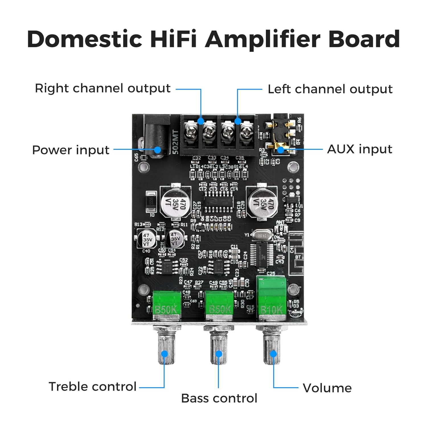 - [Dual HiFi Chip]Daakro ZK-502MT Bluetooth Amplifier Board uses two HiFi amplifier chip with PurePath technology for ultra-high resolution, ultra-low distortion and high-fidelity sound quality.